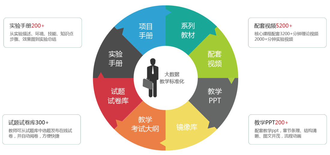 通过在线学习、原理验证、案例实验、综合分析及自主设计等多层次实验操作,为大数据教学提供一个完整一体化实验教学体系,快速提升实操技能,最终培养高素质、应用复合型大数据人才。