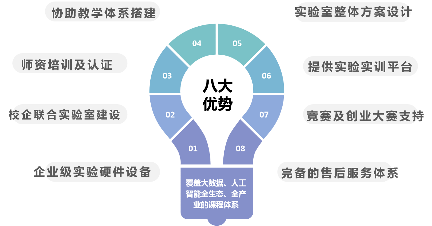 平台设计理念:为高校大数据、人工智能、区块链专业提供定制化的教学、实验、实训综合解决方案,灵活、可拓展、全方位支撑教学及实训需求。