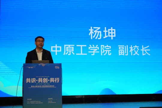 中原工学院副校长杨坤在交流会上致欢迎辞,他提到学校2024年已在省内率先面向五千余名本科生开设人工智能通识课,积累了相关教学经验,期待以此次交流会为契机深化交流,助力高校人工智能通识课程体系与教育新生态建设。